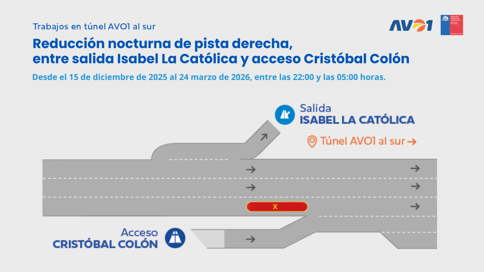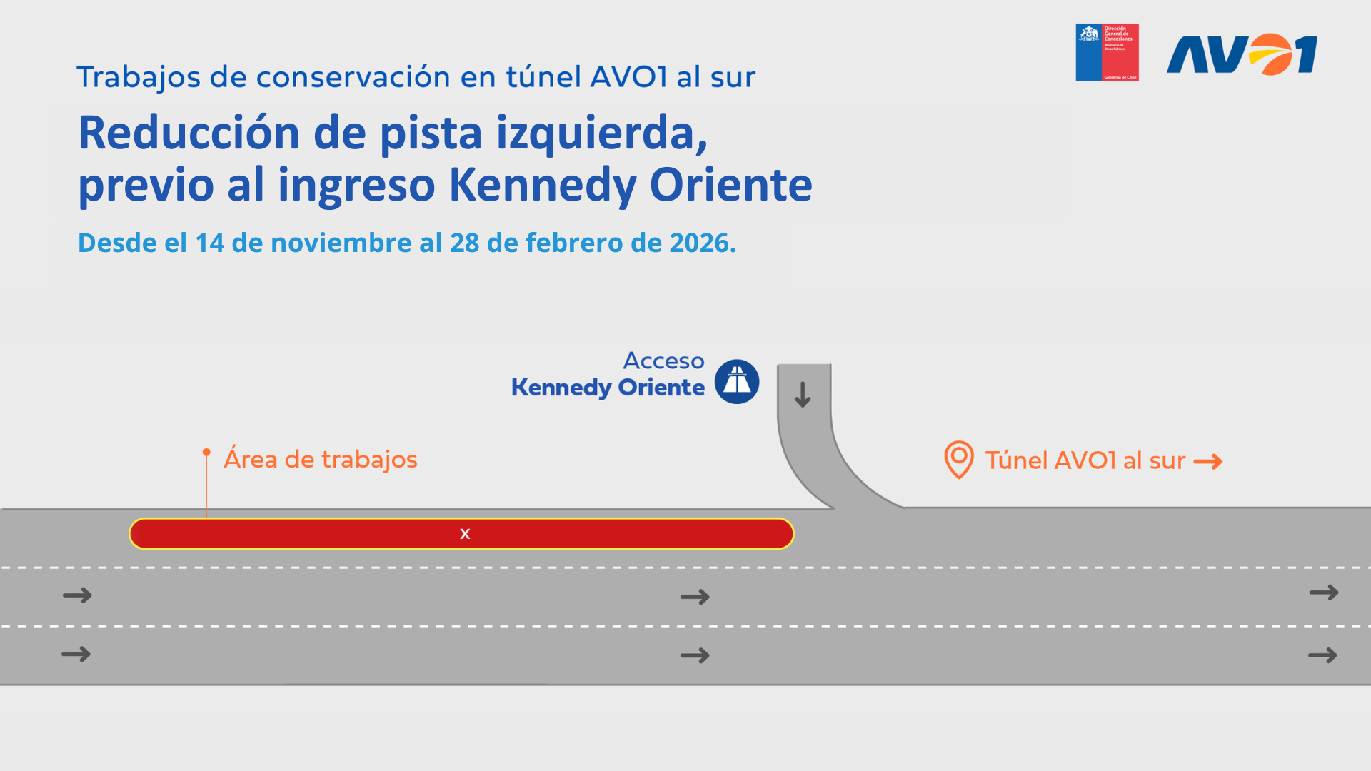 Reducción de pista izquierda en túnel AVO1 al sur