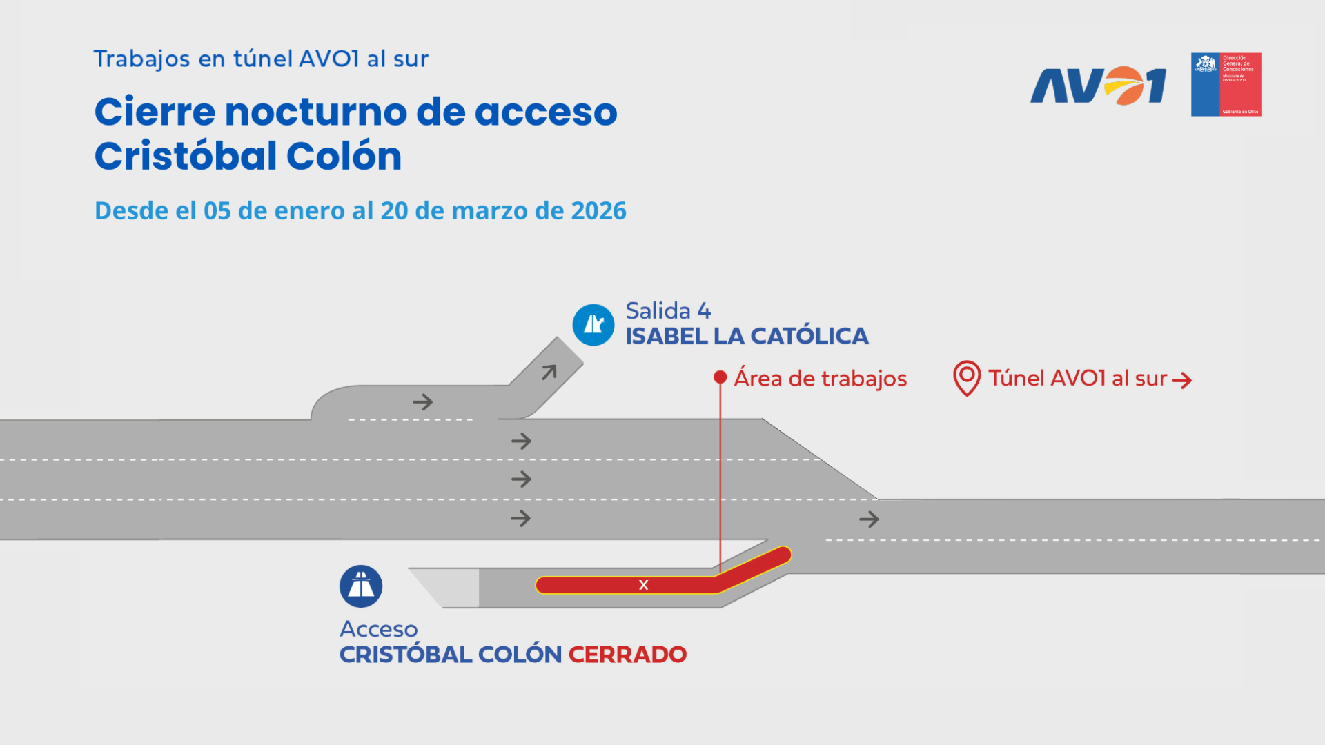 Reducción de pista izquierda en túnel AVO1 al sur